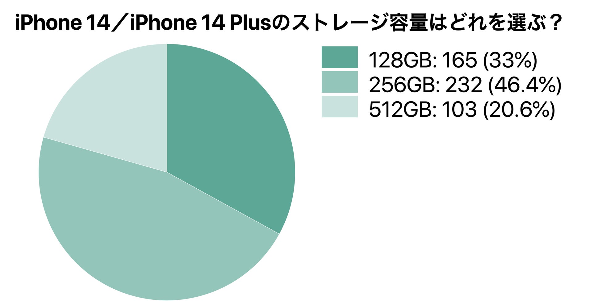 iPhone 14/iPhone14 Plusのストレージ容量も半数近くの人が「256GB」を選ぶと回答しました。