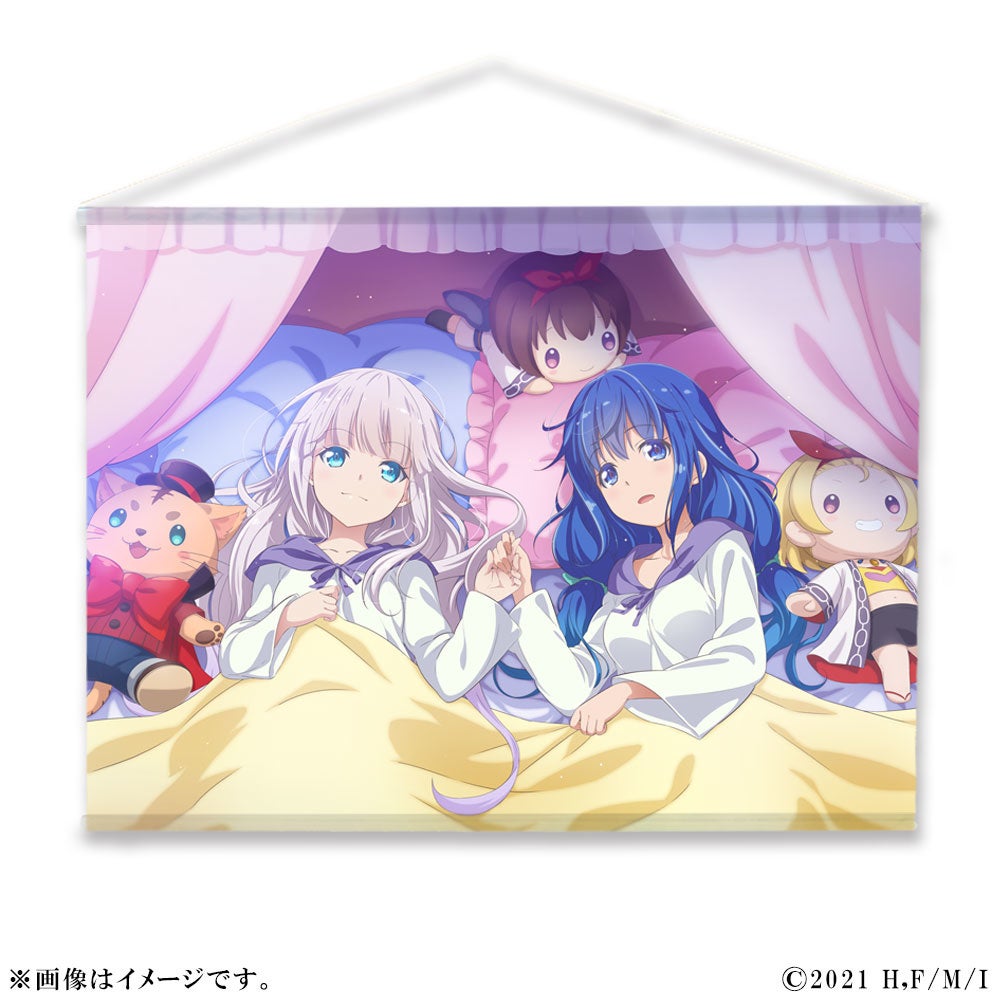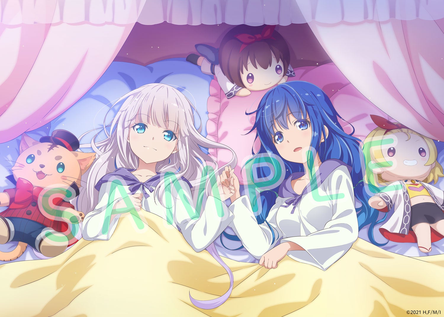 ・ベッドで手を繋いでいるミラとマリアナの愛らしい描き下ろしイラストを使用しています。