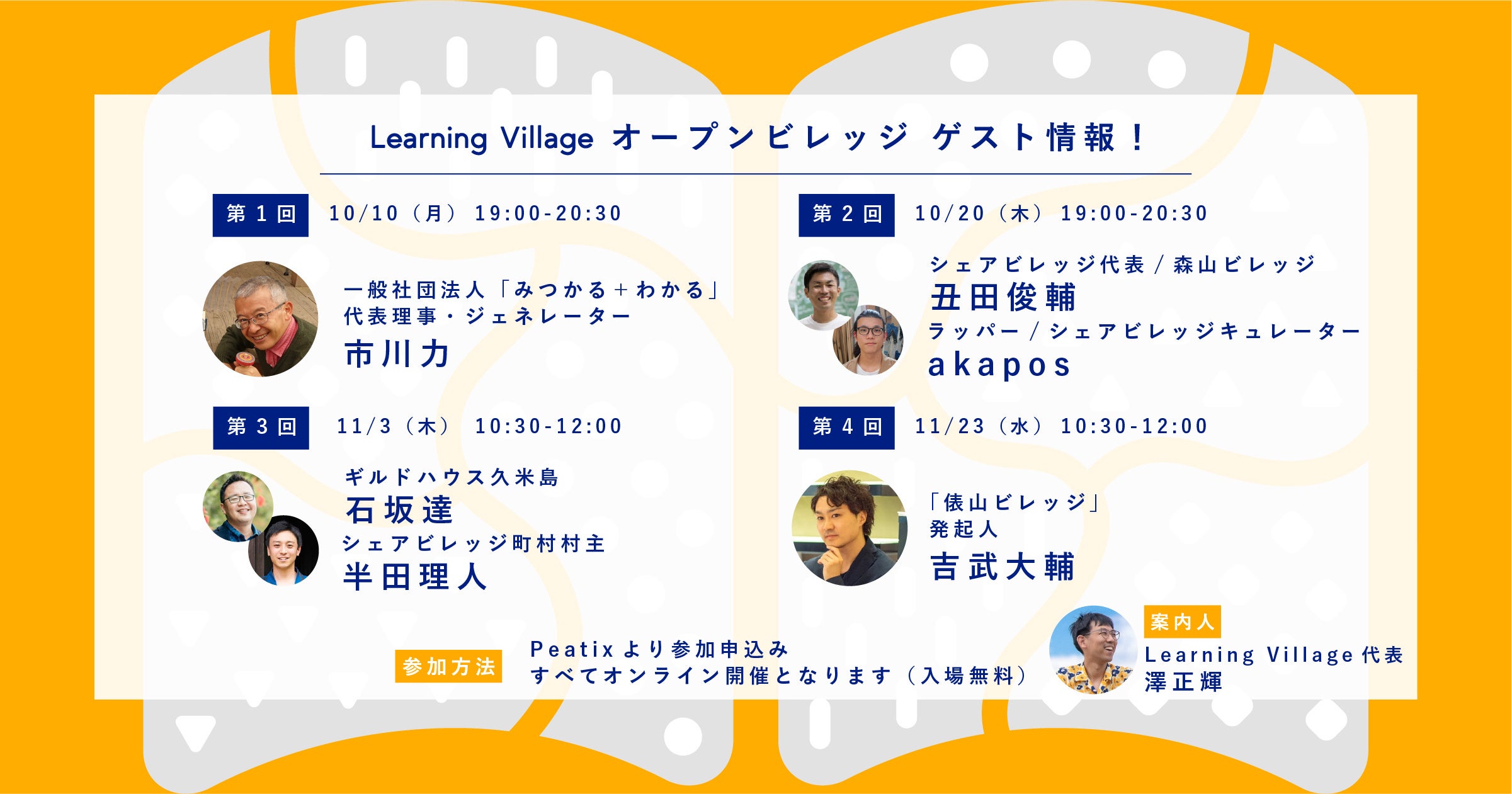 10、11月をトライアル期間とし、オープンビレッジ(無料体験イベント)とゼミへの無料参加が可能です。