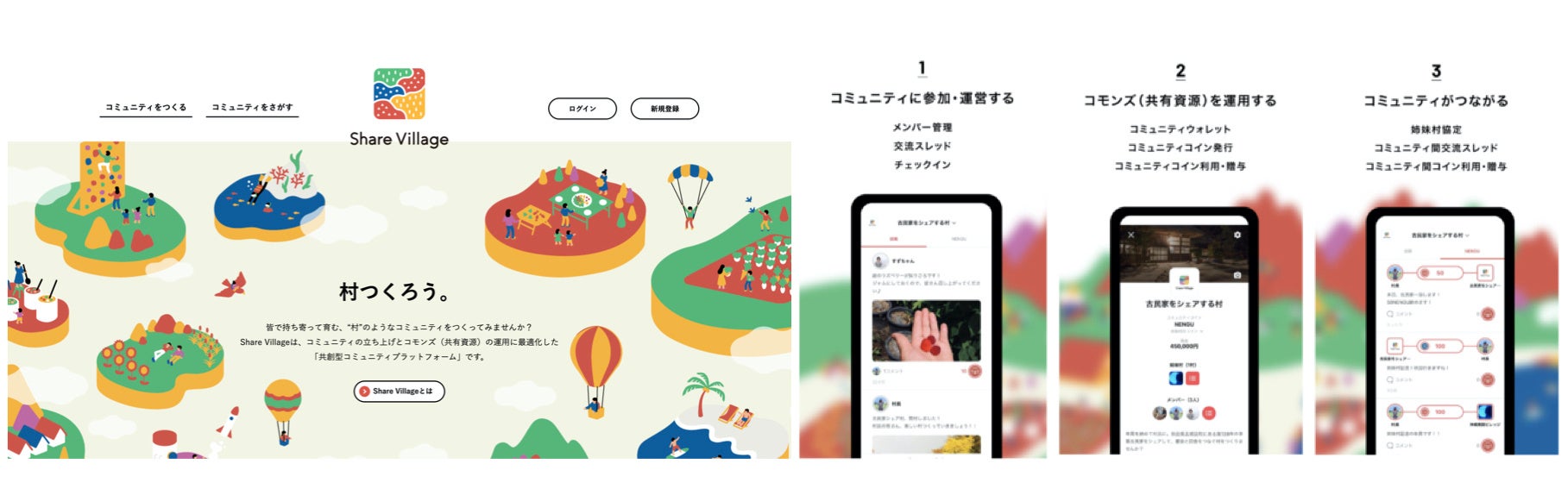 Share Villageは、コミュニティの立ち上げと運営、コモンズ(共有資源)の運用に最適化した「共創型コミュニティプラットフォーム」を展開しています。生産者と消費者、カリスマとフォロワーといった関係性を越えて、一人ひとりの参加によって形づくられる“村”のようなコミュニティづくりを下支えしてきました。