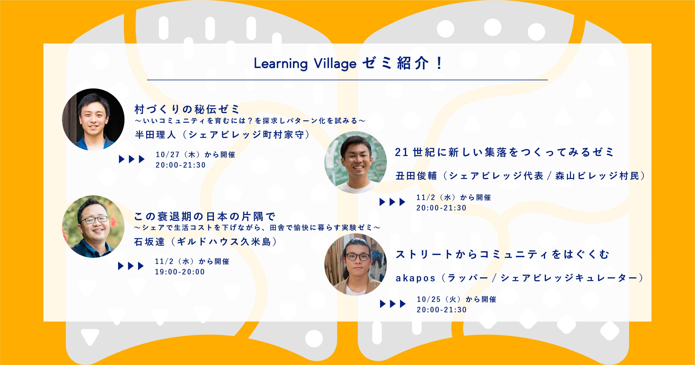 シェアビレッジ株式会社は、”みんなでつくる暮らし”の実践者やそれを体験したい人が、学びや経験、知恵や技術を持ち寄り、深めていくための場「ラーニングビレッジ」を新たにリリースします。「まなぶをふかめる」「たびしてまなぶ」「まなんでかせぐ」の3つを合言葉に、”みんなでつくる暮らし”に向けたナレッジの共有と継承を推進していきます。