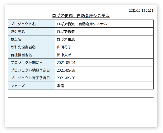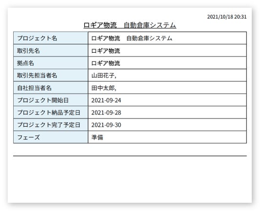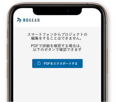 更新前のデータの保存やROGEARにアクセスができないユーザーへの共有はプロジェクト情報をPDF出力し、対応することができます。