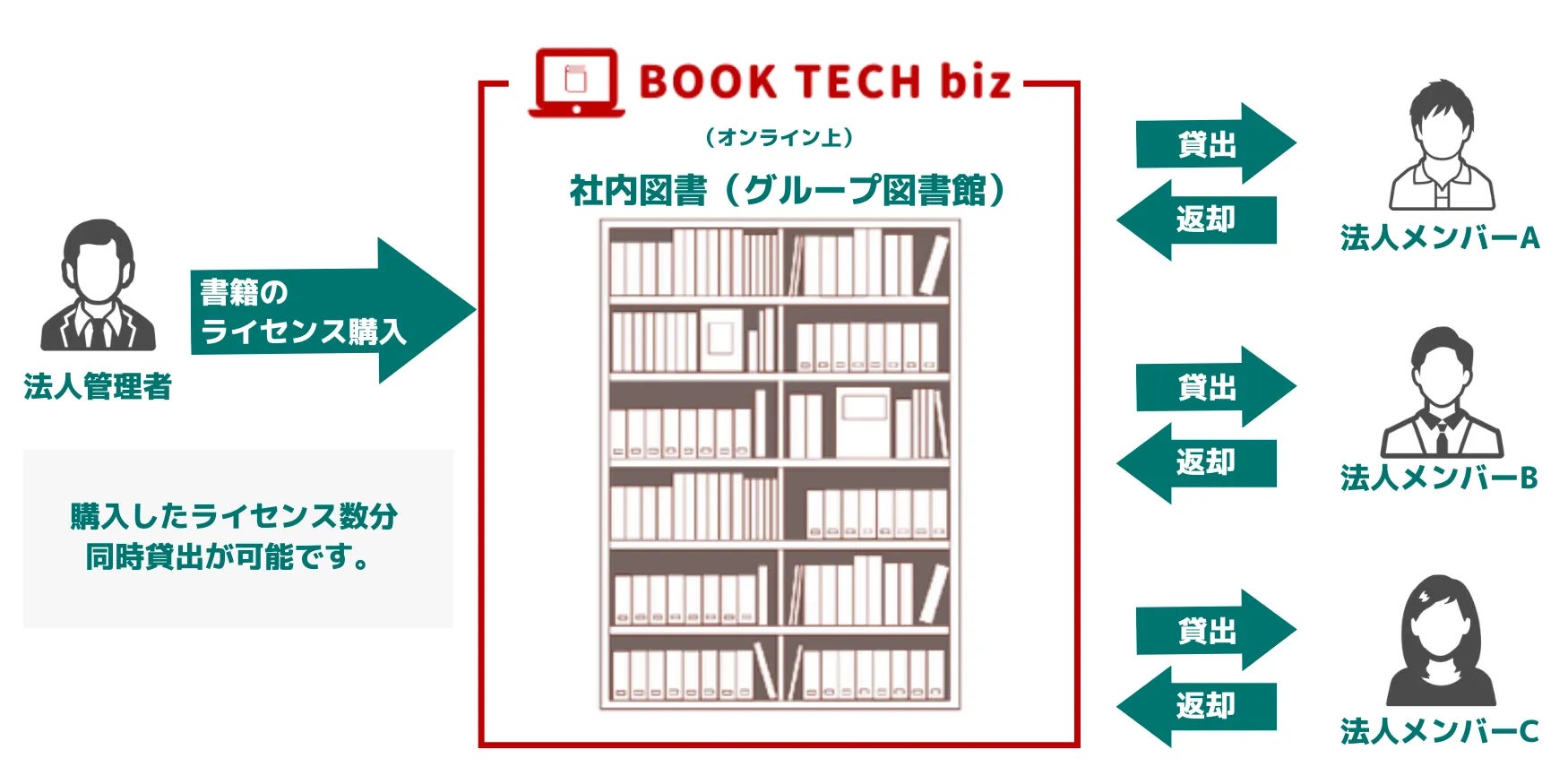 「BOOK TECH biz」は、法人向け電子図書館サービスです。