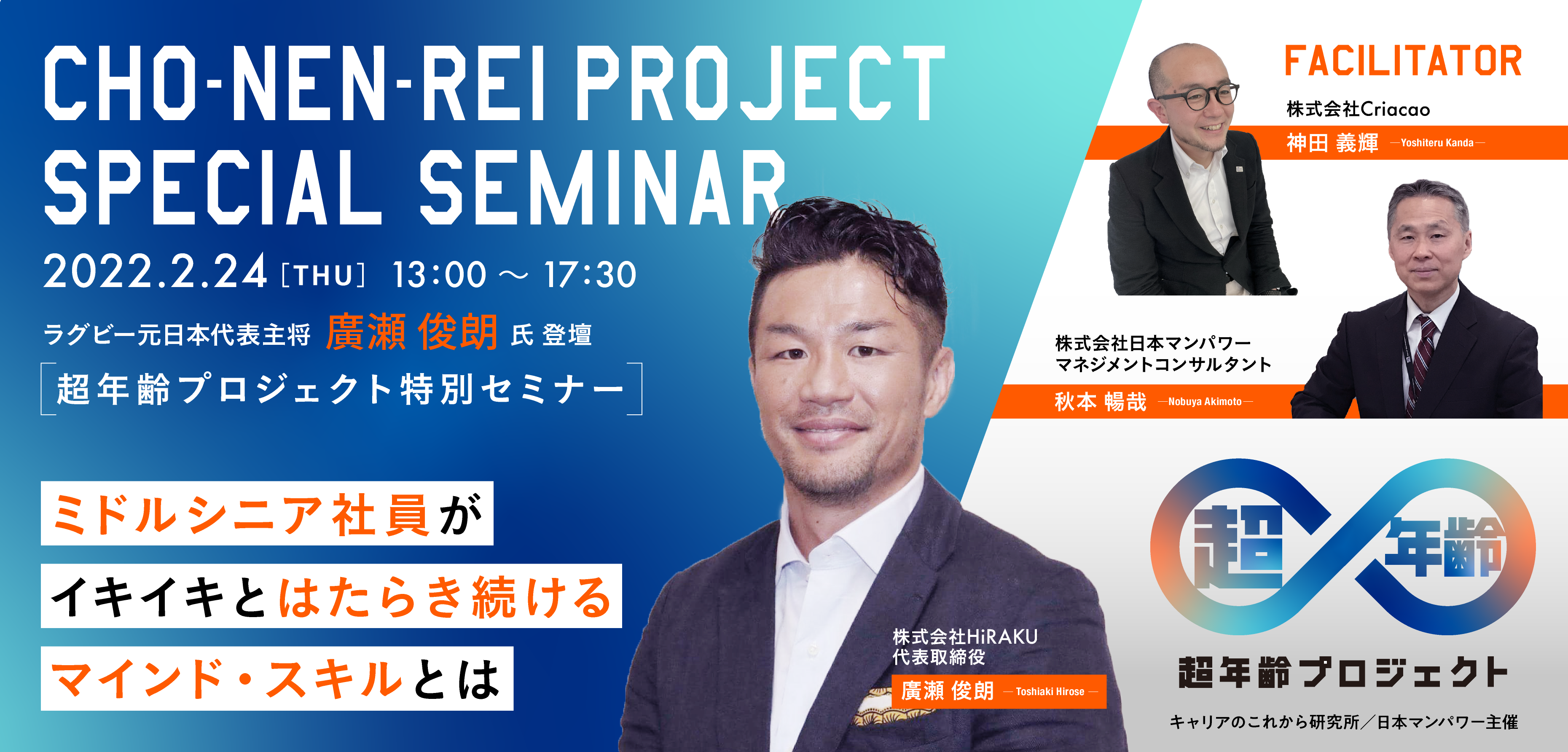 日本マンパワー/キャリアのこれから研究所「ミドルシニア社員がイキイキとはたらき続けるマインド・スキルとは」超年齢プロジェクト特別セミナー開催のお知らせ