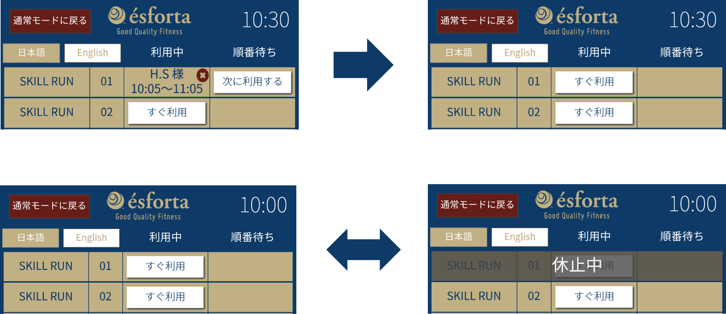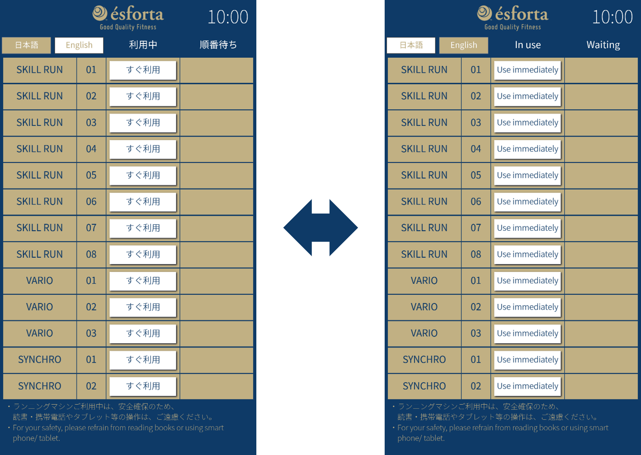 フィットネスマシンの順番待ちを管理するタッチサイネージを導入