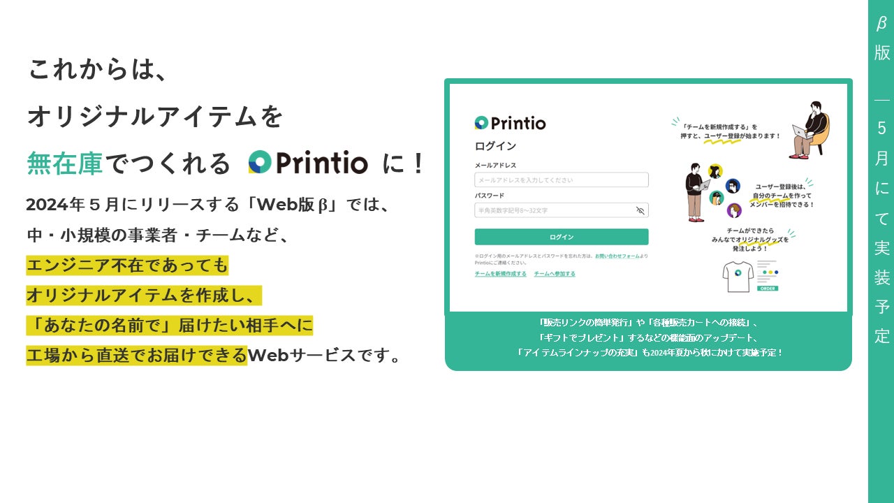 〈Printio〉β版がオープン!正式版サービスオープンは2024年夏以降を予定。β版のご利用はお問い合わせフォームより!