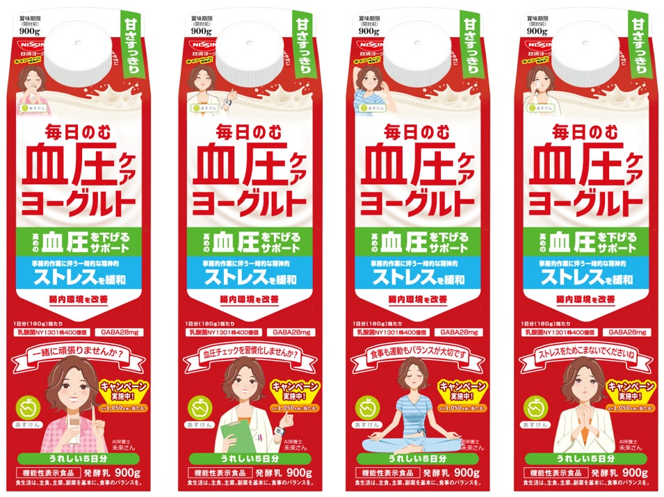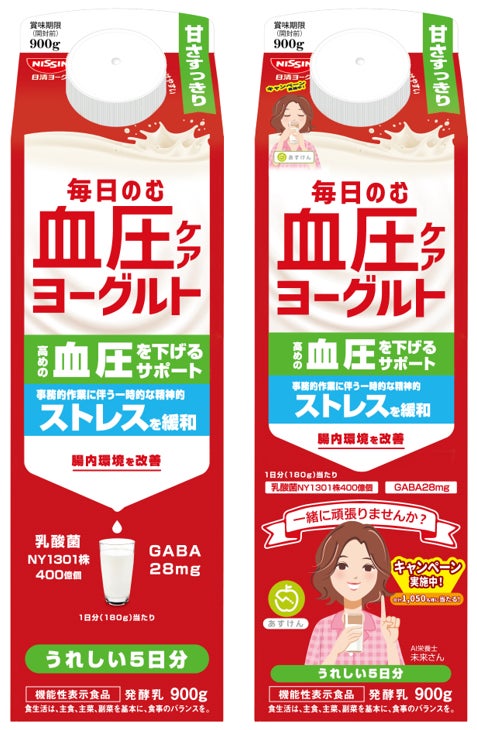 ■対象商品:「毎日のむ血圧ケアヨーグルト」通常パッケージ、『あすけん』AI栄養士未来さんコラボパッケージ