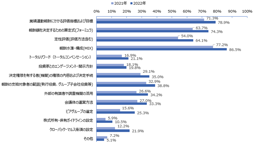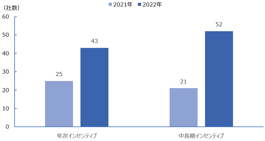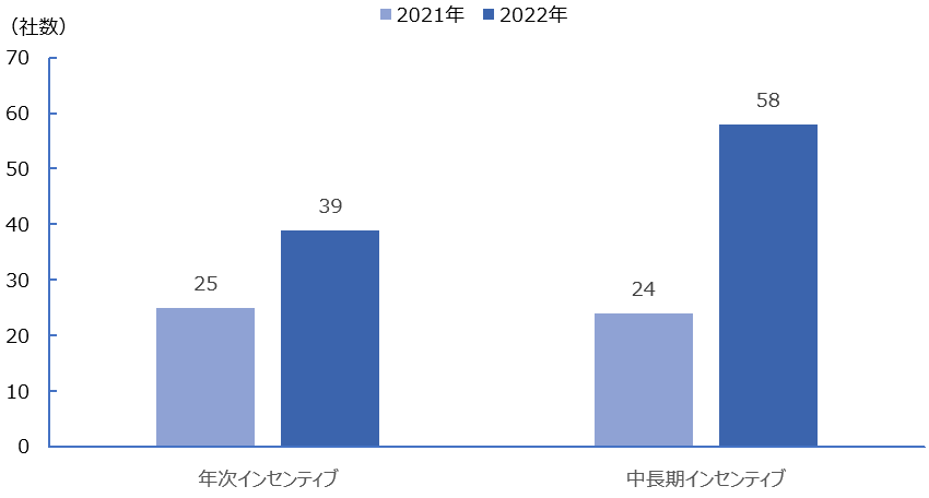 *採用企業の定義:2021年、2022年で役員報酬の評価で使用する指標として以下のいずれかを採用していると回答した社数