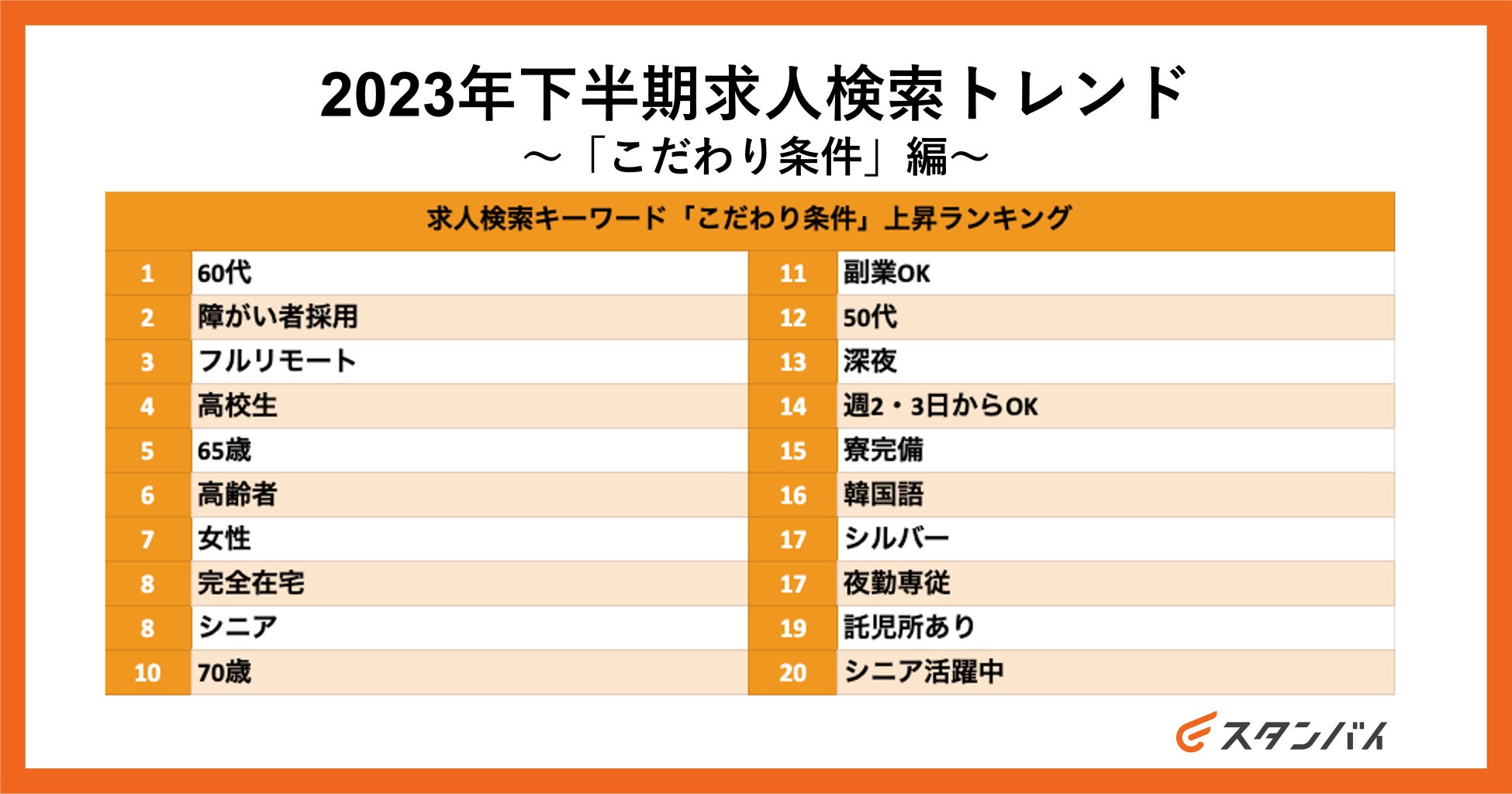 ■2023年下半期、求人検索「こだわり条件」における上昇ワード1位は「60代」