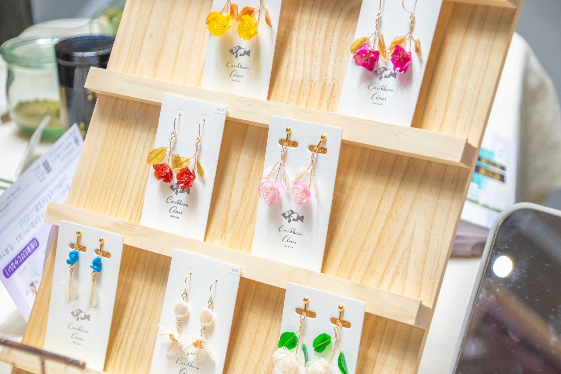 そうした中、鱗のアクセサリー「caribbean amor(カリビアン・アモール)」のアクセサリー作家であるナオミさんは、パナマ在住時に海の美しさを維持するために何かできることはないかと考え、廃棄されるはずだった鯛の鱗を用いて、花型のイヤリング制作を始めたそうです。