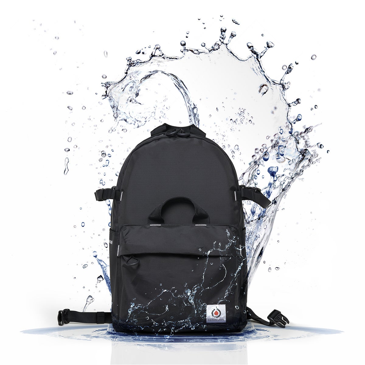海や川に転落したときに、抱えて浮くことで命を守るリュックです。防衛省や海上保安庁が使用するライフジャケットにも使われる、特別な浮力体を採用。生地には、回収されたペットボトルなどから作られた再生ポリエステルを使っています。防災士監修のもと、もしものときに信頼できる浮力や耐久性と、シーンを選ばないデザイン性を両立させました。