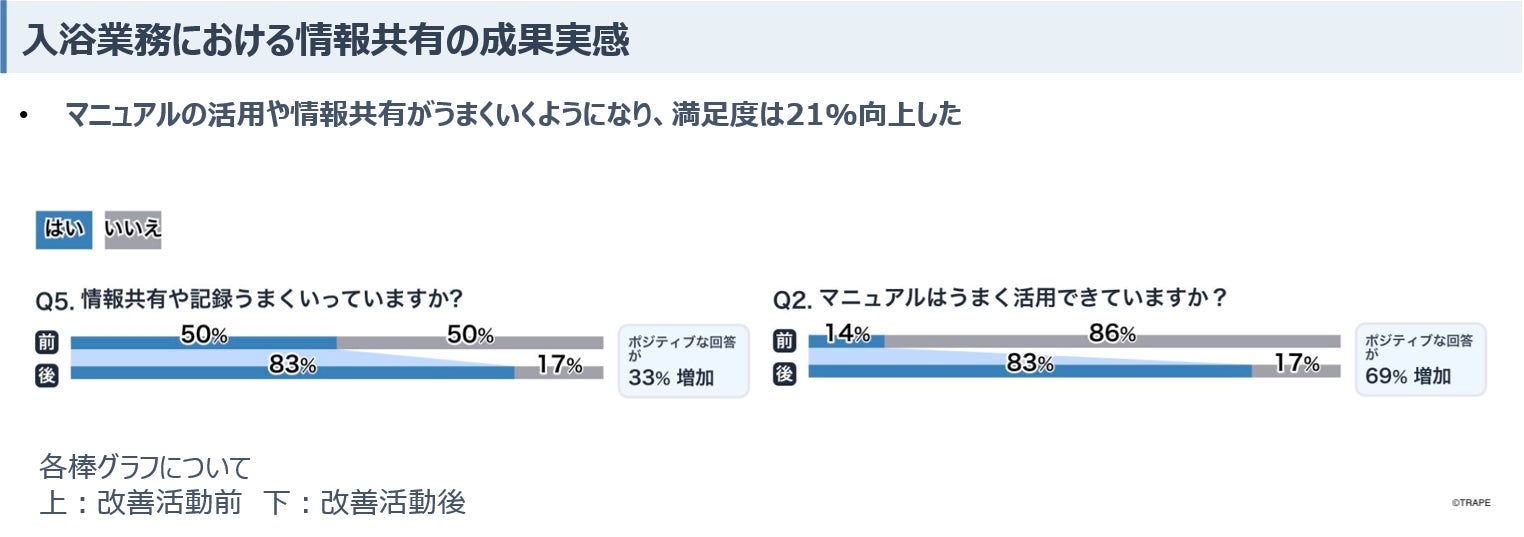 生産性向上の取り組みを行うことで、新しい職員でも入浴ケアの内容が分かるようになり、自信を持って取り組めるようになった
