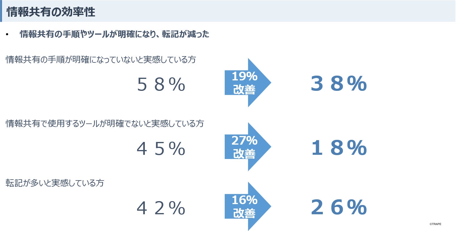今までは共有できているようで難しかった情報共有について、共通課題が明確になったことは大きな進歩だと思う