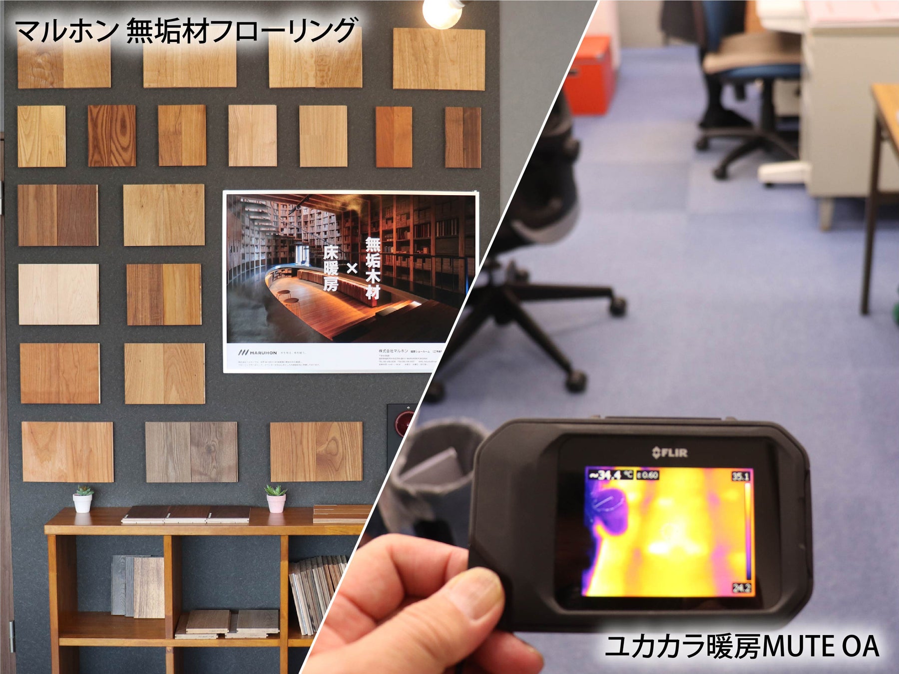 今回は、床暖房専用無垢材フローリングの専門メーカー(株)マルホンと初めてのコラボレーションを組む他、新しく開発されたオフィス用OAフロア向けユカカラ暖房MUTE OA(ミュートOA)を会場にて公式発表します。