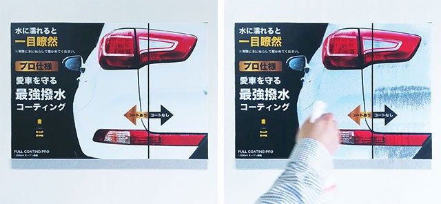 例:水垢を防ぐカーワックスのプロモーション(霧吹きで体験型展示)