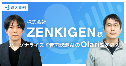 企業に寄り添った音声認識の最先端技術がいち早く利用可能に!株式会社ZENKIGEN「Olaris(オラリス)」導入事例