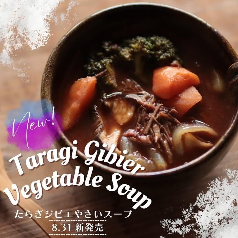 新商品!!地産地消にこだわり、町産の野菜とジビエ肉をふんだんに使った究極のスープ【ジビエやさいスープ】をリリースします。