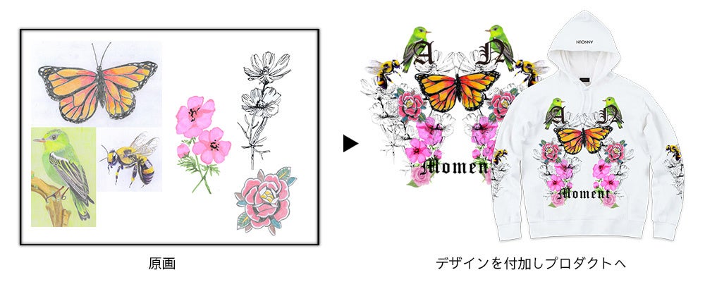 自然や動物をモチーフに個性あふれる原画を描き、ガーデンに蝶々や鳥が飛んでいる風景をイメージしたグラフィックやANNOUN定番のベアモチーフのグラフィックアイテム、とても暖かいヘヴィーウエイト裏起毛素材パーカー、MA−1を制作。ランチバッグや買い物袋など小物アイテムも充実したラインナップになっており、どれもが高いクオリティーを目指し作り出すANNOUNプロダクトの新作となっております。