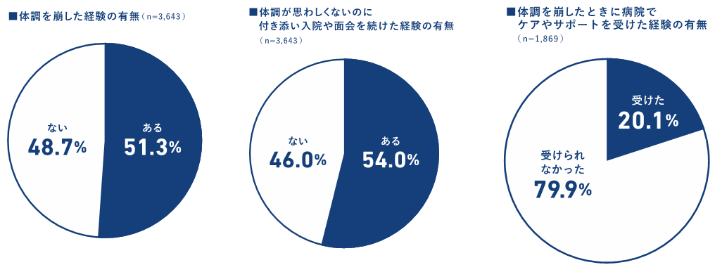 ◆ 半数以上が体調不良になる中、病院からのサポートを受けられたのは2割。 |