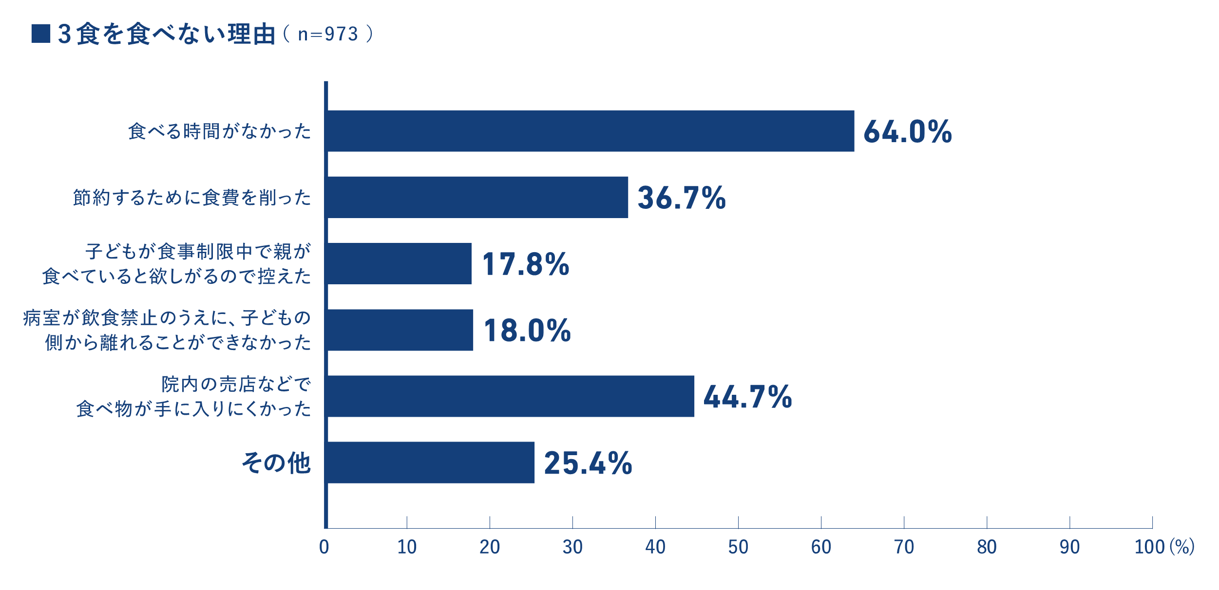 院内のコンビニ・売店の食事が6割。食べる時間すらない家族も多数。