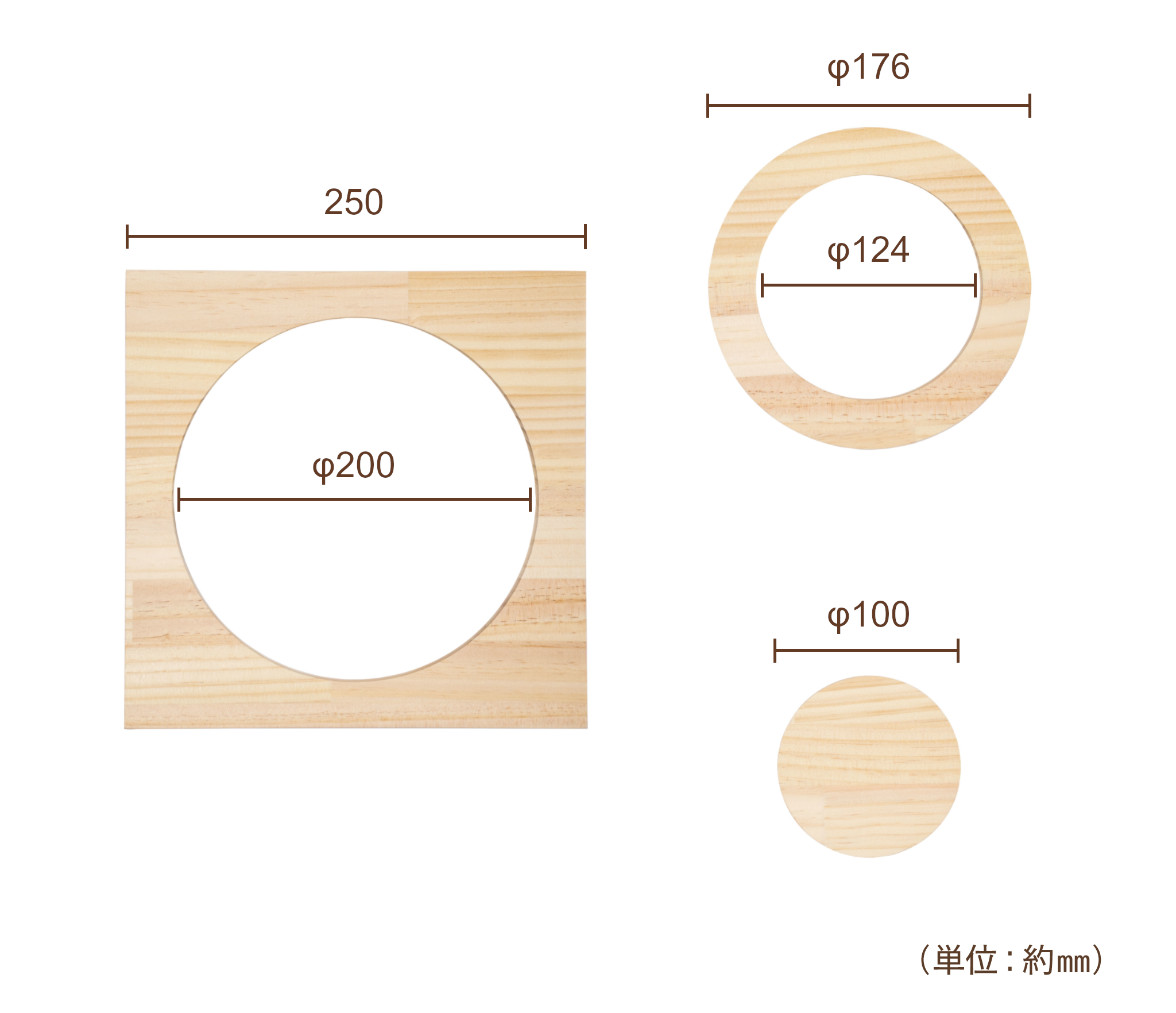 セット内容:板250×250㎜、丸板Φ176㎜、丸板Φ100㎜、パターンシート&作り方説明書