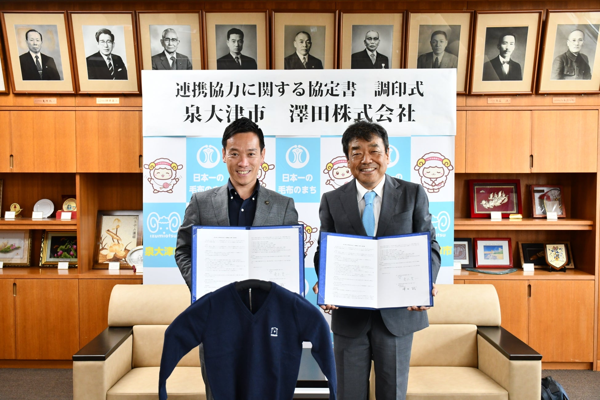 澤田株式会社、泉大津市と官民連携で天然素材ニット制服の共同開発をスタート-制服(ニット)寄贈式のご案内