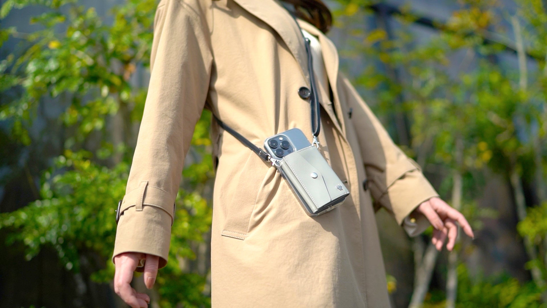 付属のショルダーストラップを使えば、ショルダースマホ財布としても使える