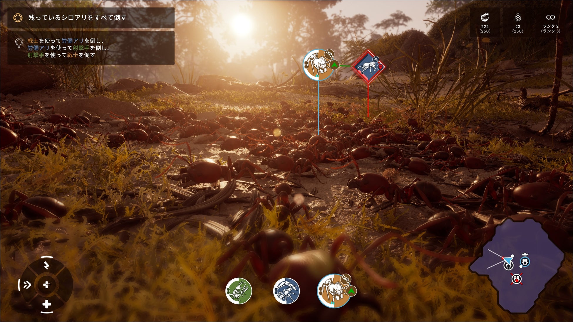 リアリティー溢れる戦略ゲームで恐れ知らずの蟻となり、コロニーを率いて森の危険を乗り越えましょう。