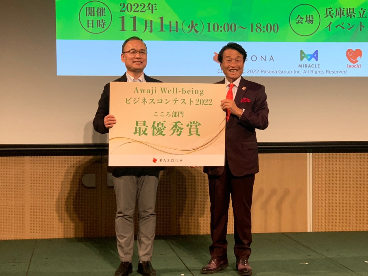 株式会社トータルブレインケア(本社:兵庫県神戸市、代表取締役社長:河越眞介)は、株式会社パソナグループが主催する、『Awaji Well-beingビジネスコンテスト2022』内のピッチコンテスト(こころ部門)にて、最優秀賞を受賞しました。