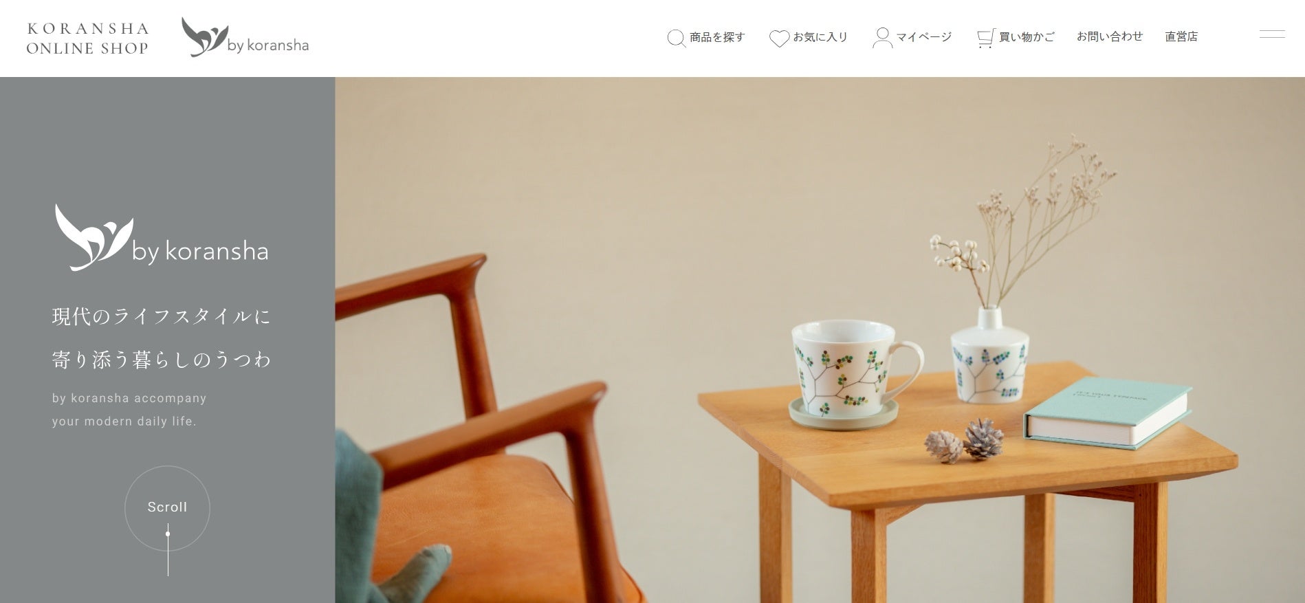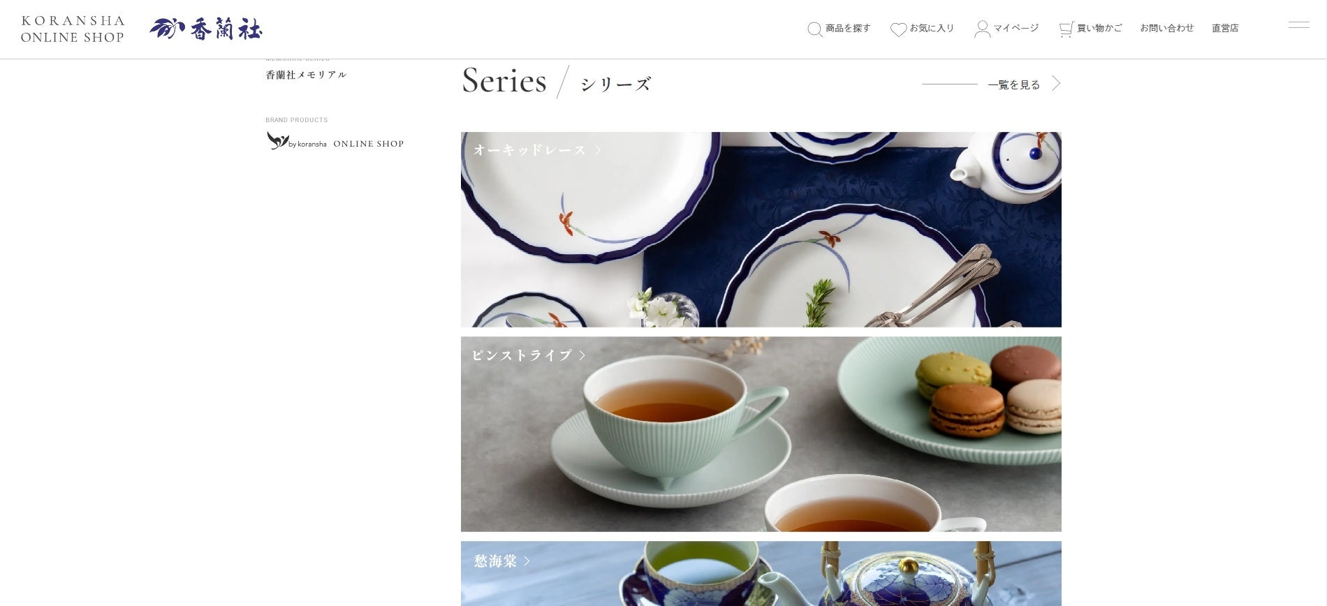 オンラインショップは、”香蘭社”と”by koransha”の2つのブランド構成となっています。