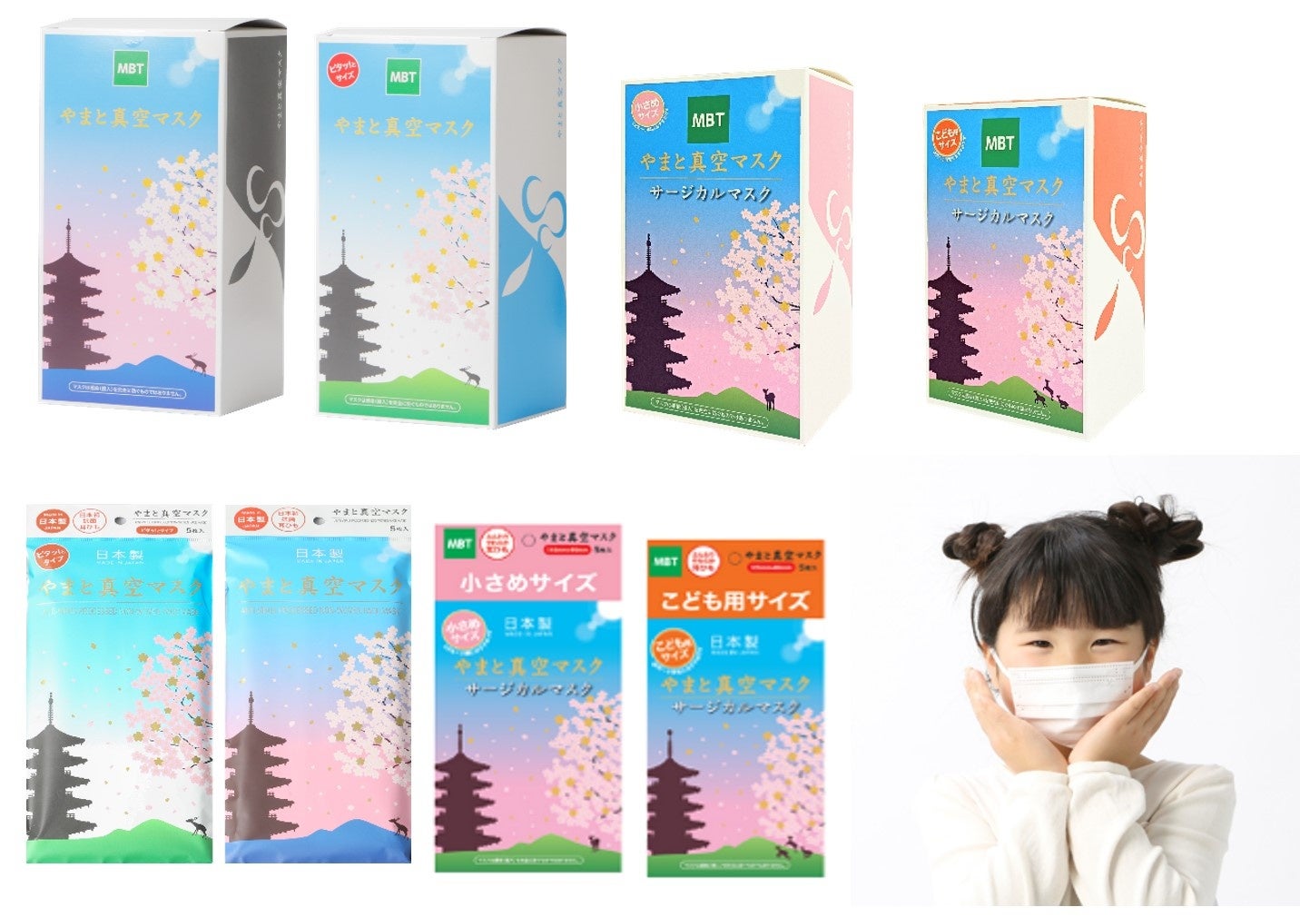 やまと真空マスク (こども用サイズ) ・1箱30枚入 2,100円 / 1袋5枚入 380円