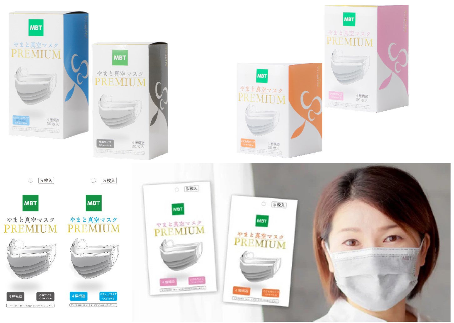 やまと真空マスク PREMIUM(小さめサイズ) ・1箱30枚入 2,700円 / 1袋5枚入 470円