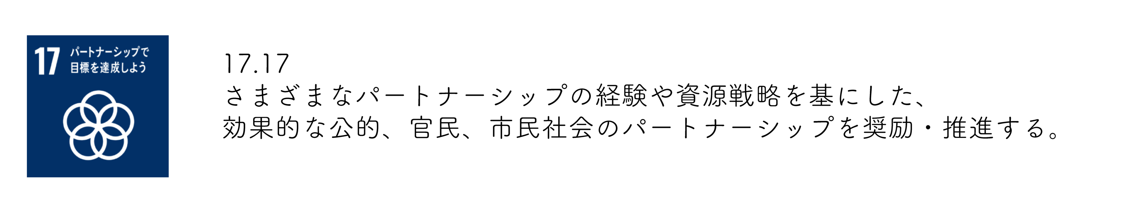 さまざまなパートナーシップの経験や資源戦略を基にした、効果的な公的、官民、市民社会のパートナーシップを奨励・推進する。
