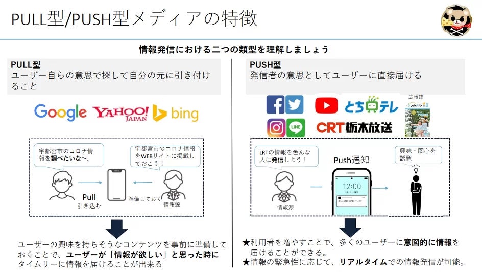 もうひとつは、ユーザー自らの意思で情報を探し取得するPULL型情報発信です。ユーザーが興味を持ちそうなコンテンツを事前に準備しておくことで、「情報が欲しい」と思ったタイミングでタイムリーに情報を受け取ることが出来ます。