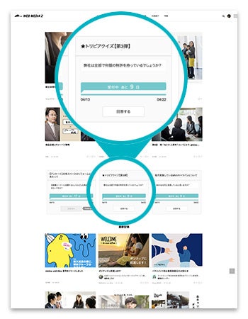 WEB社内報「WMZ」は、企業から社員への情報発信を円滑にするためのWEB社内報クラウドシステムです。この度、双方向型のコミュニケーションを生み出す新機能として『アンケート機能』を追加いたしました。これにより、WEB社内報「WMZ」上で社員の「声」を収集して共有する事ができるようになりました。通常のアンケート形式の他に「クイズ形式」もお選びいただけます。選択肢に「正誤」両方の回答を用意しておくことで、簡単なクイズを実施する事も可能です。アイデア次第で活用の幅をより一層広げていただけるようになり、「WMZ」導入済みのお客様からもご好評の声をいただいております。