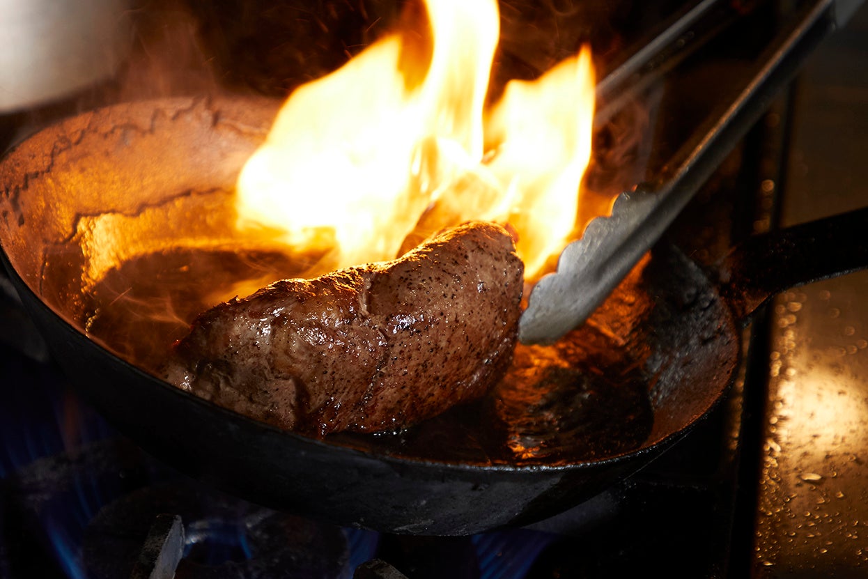 仕込みは2kg単位で行っているため、分厚いステーキを好きな形に切り分けて楽しめるのも人気の食べ方です。