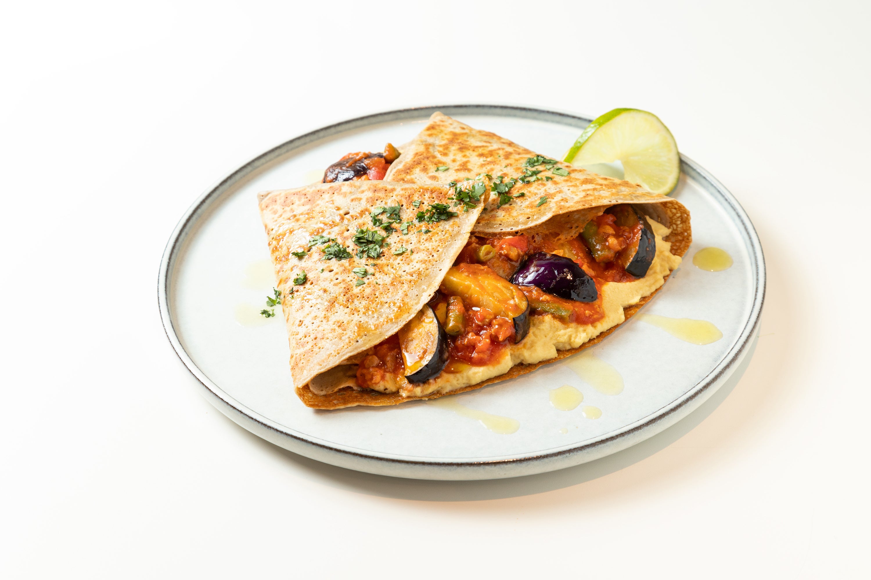 ノカオイとフムスが出会い、ヘルシーなのに食べ応え満点!なオリエンタルクレープが出来上がりました。