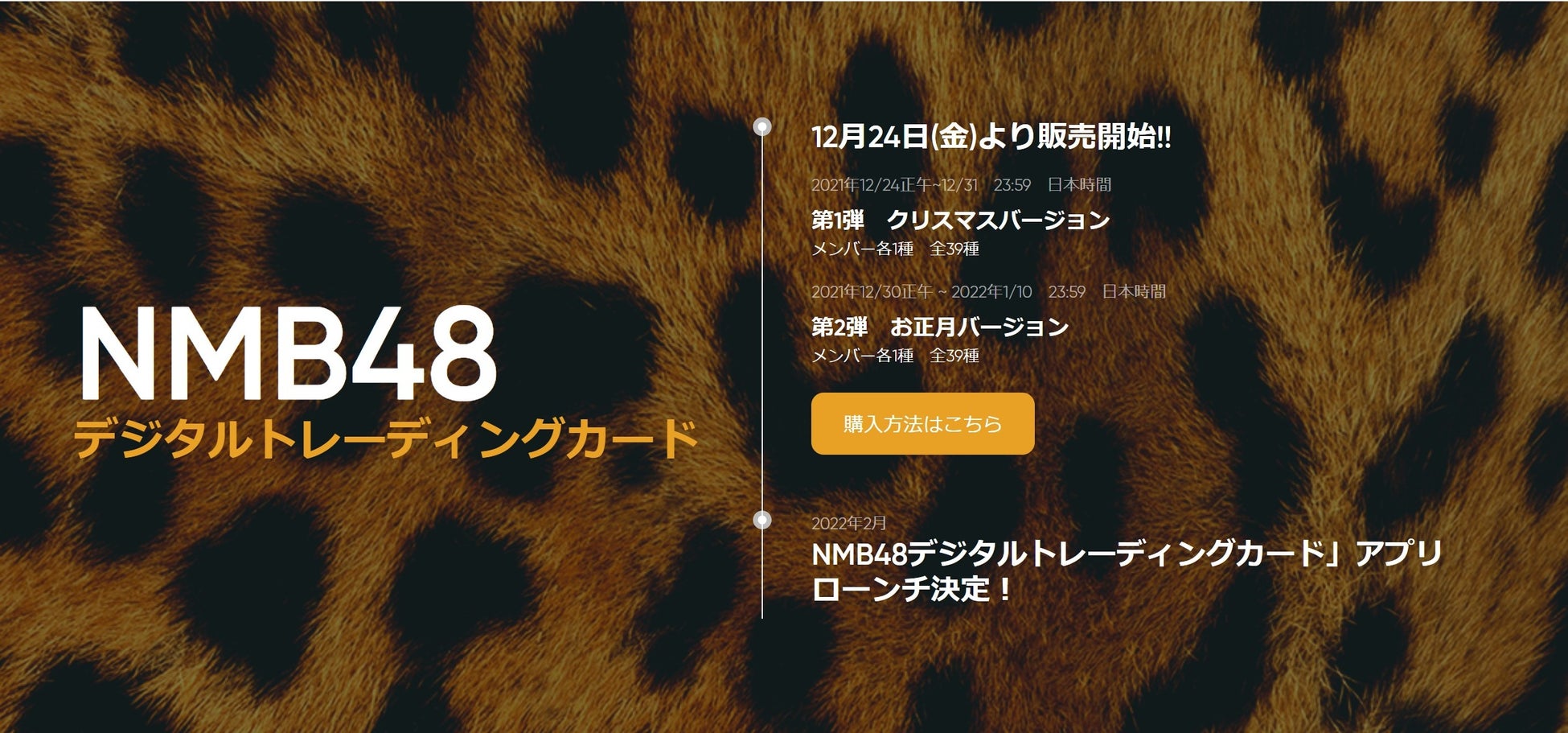 『NMB48デジタルトレーディングカード』(以下 : NFTデジタルトレーディングカード)の販売とサービスの概要は以下の通りです。