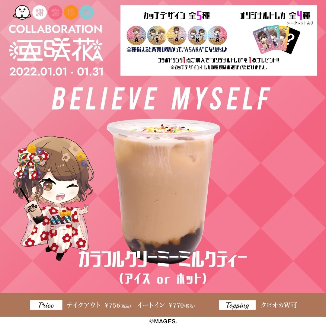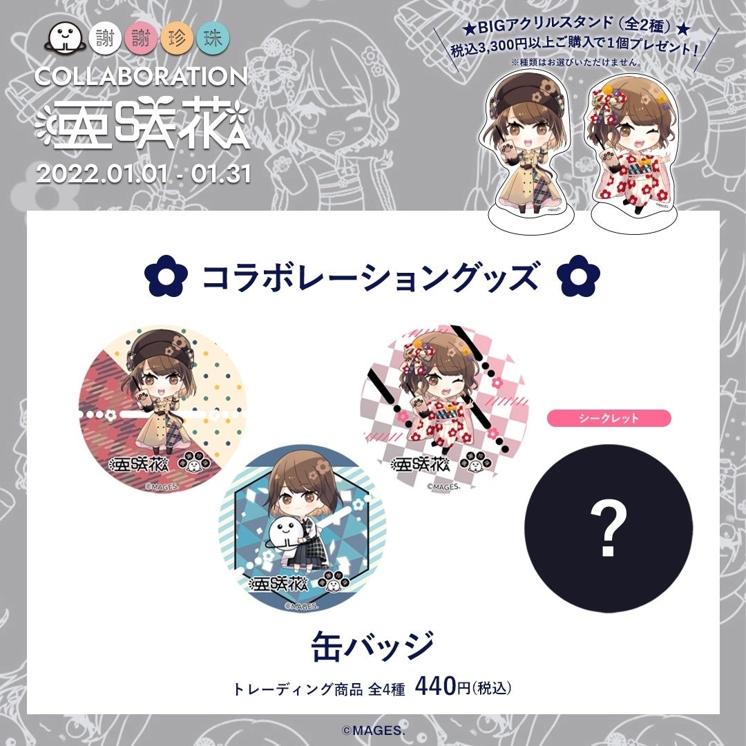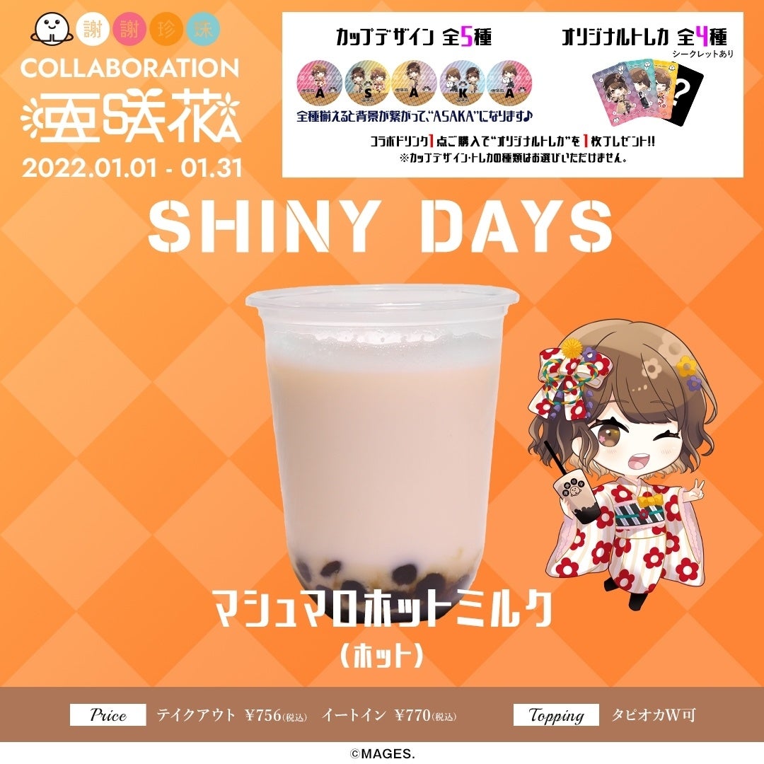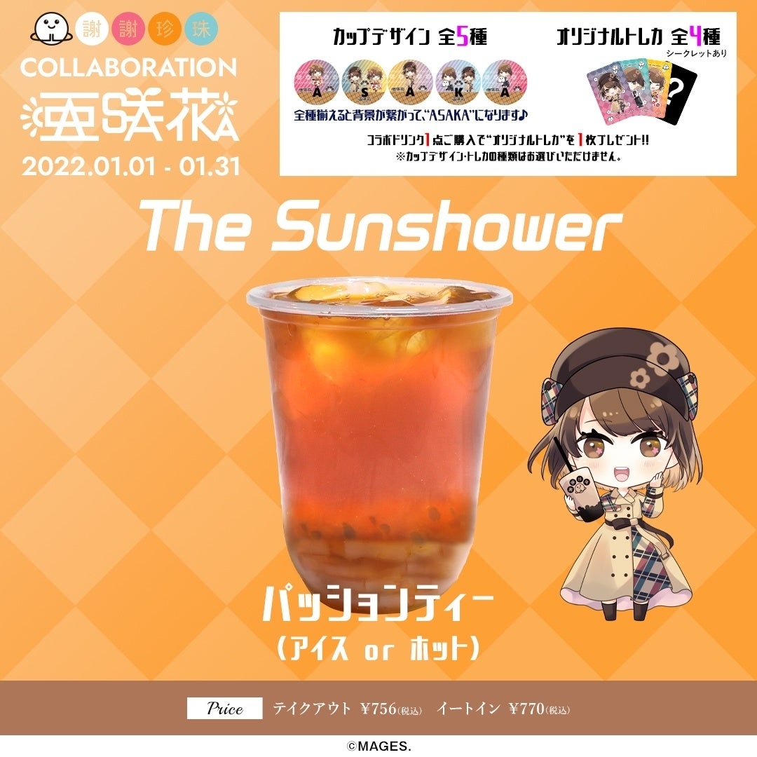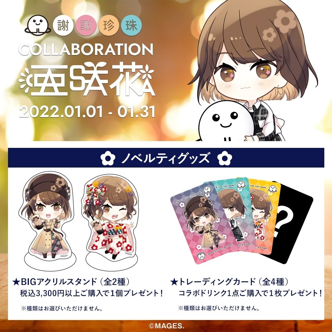 台湾発黒糖生タピオカ専門店「謝謝珍珠(シェイシェイパール )」とアニソンシンガー「亜咲花」のコラボレーションドリンク・グッズを、期間限定で販売いたします。グッズは亜咲花オリジナルイラストを使用。髪型や衣装にもこだわり、本人監修のとてもキュートなイラストです。