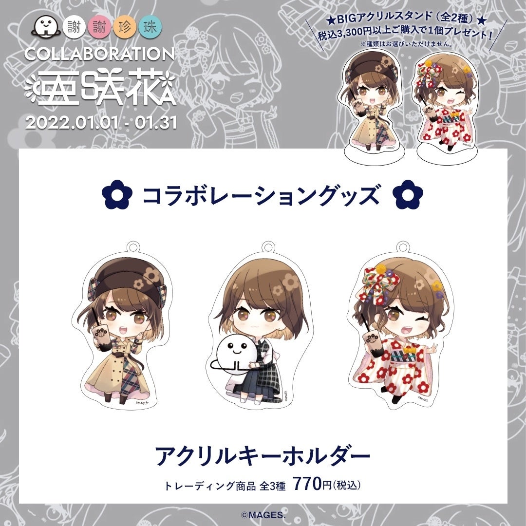 亜咲花の新曲やライブの衣装、振袖を着た謝謝珍珠オリジナル描きおこしイラストがとっても可愛いアクリルキーホルダーは、どこへでも連れて行きたくなっちゃう・・・!