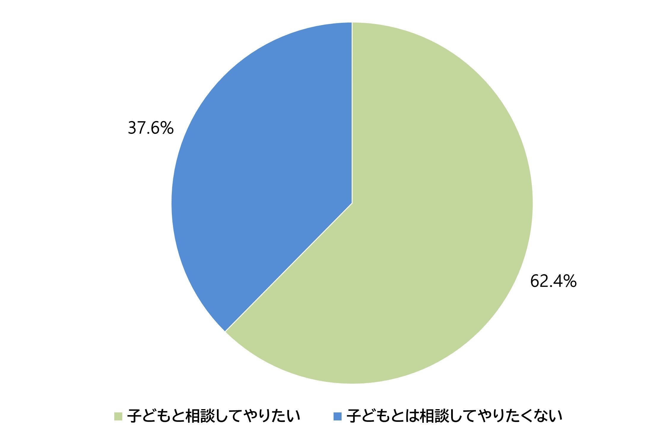 親世代にお子さまと相談しながら終活をしたいかを聞いたところ、62.4%の人が「子どもと相談してやりたい」と回答しました。Q1と比較して、子供に相談したいけれど、実際には相談できていないという親世代の本音が分かりました。