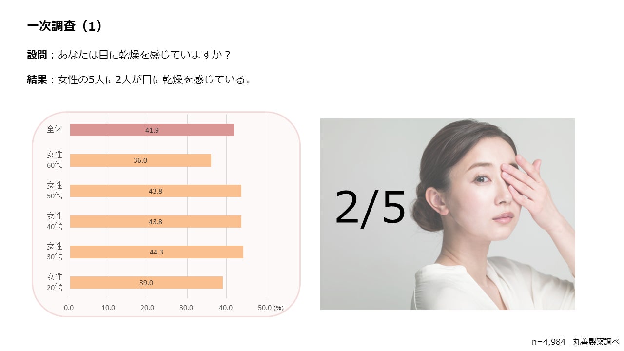 ▶ 女性の5人に2人が目の乾燥を感じていることがわかりました。
