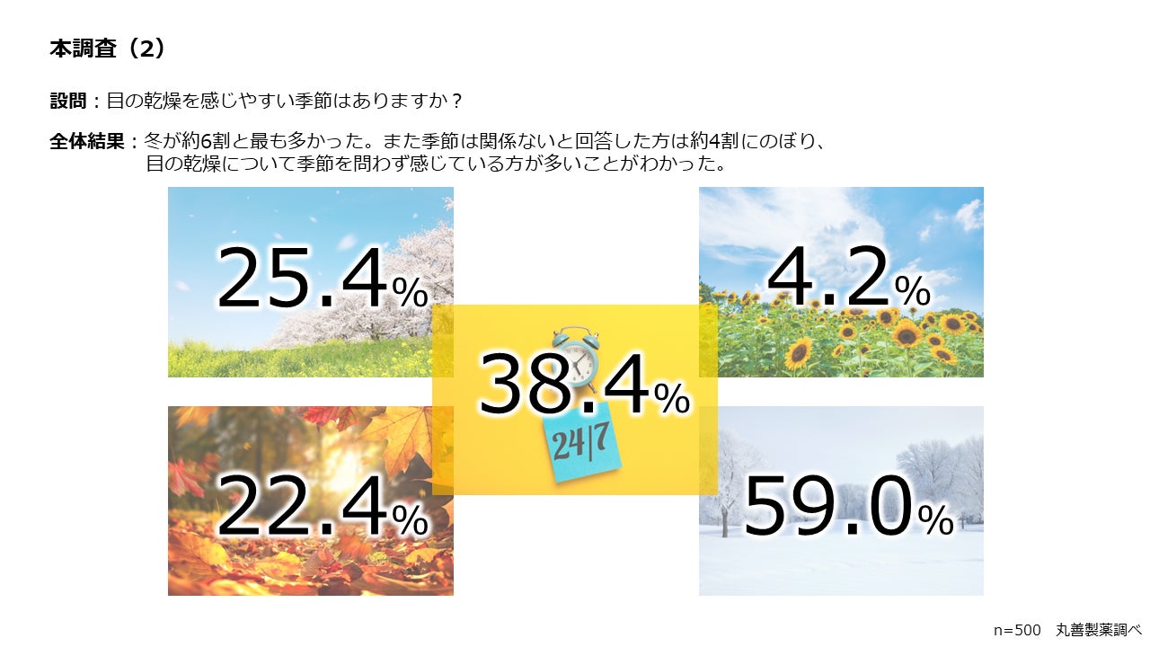 ▶ 乾燥を感じる季節は冬、時間は夕方が多いが、季節、時間に関係なく、