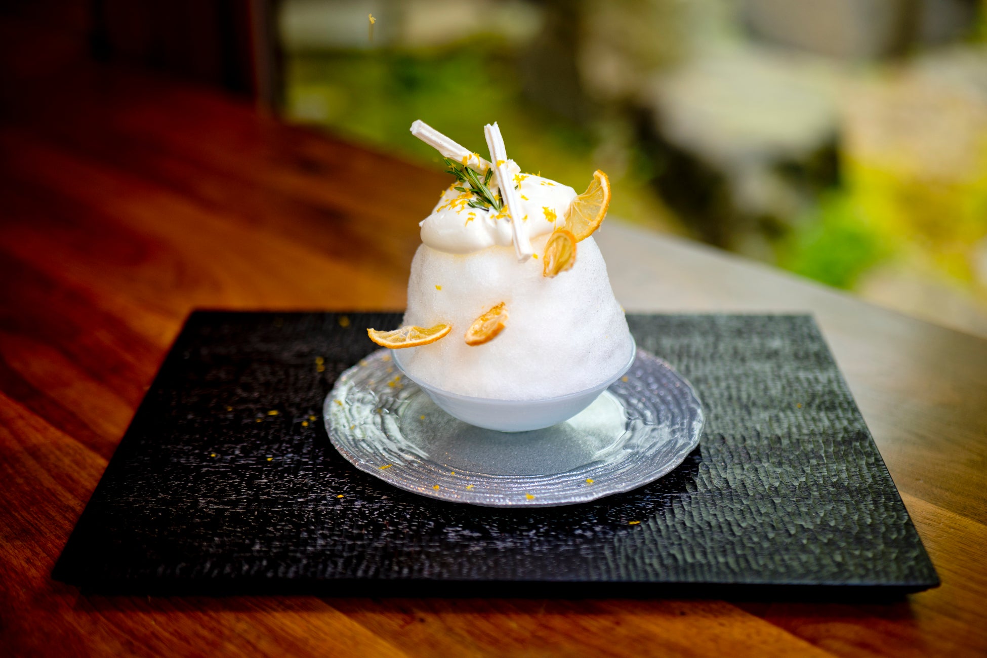 今回の『氷菓~白雪~』は、素材、見た目、器、空間すべてにこだわり、夏の黒壁を彩る一品として開発されました。「旅の目的になるかき氷」として、ぜひお楽しみください。