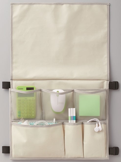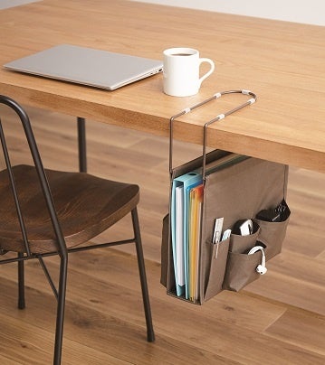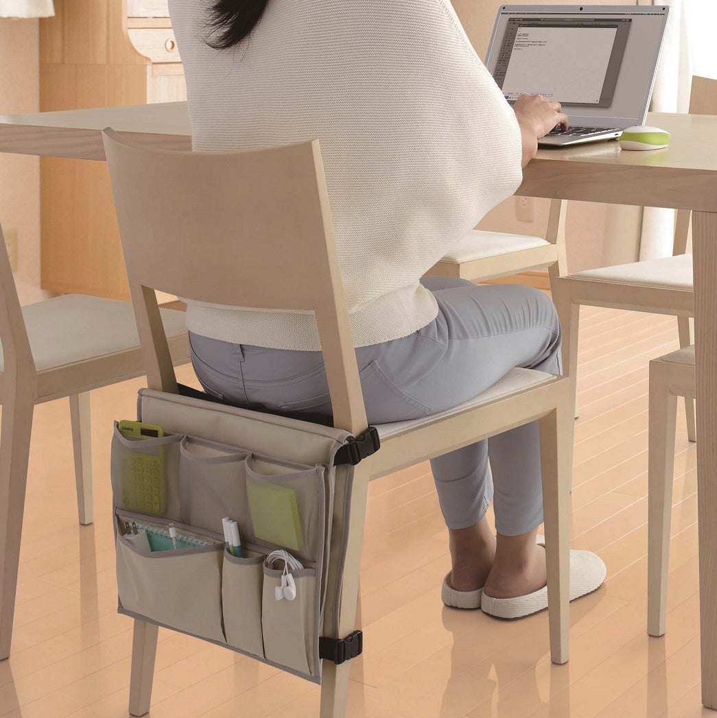チェアの背面に取り付けて仕事道具をひとまとめに収納