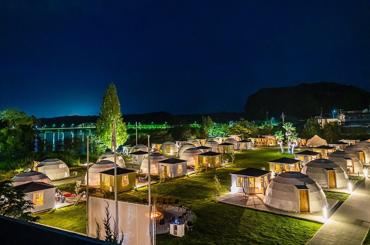 「地域の課題をリゾートで解決する」を経営理念に掲げるHAMIRUは、関東にてグランピング事業を中心に宿泊施設の開発及び運営を行っている会社です。廃校となった旧高滝小学校を千葉県市原市より借り受け、2021年4月に「高滝湖グランピングリゾート」を開業しました。地域に「宿泊型」観光入込客数の増加、地域資源の活⽤・地域雇⽤などの新しい需要を生み出し「すみ続けられるまちづくり」の体現を目指し、高滝湖グランピングリゾートでは年間2万人以上の集客により、地域に新たな人流をもたらしています。