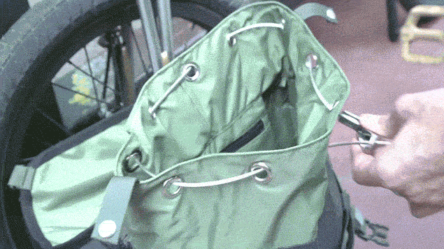 さらに、走行中、バタバタと紐が邪魔にならないよう、ストラップの余った紐を折りたたむことができるように設計されています。