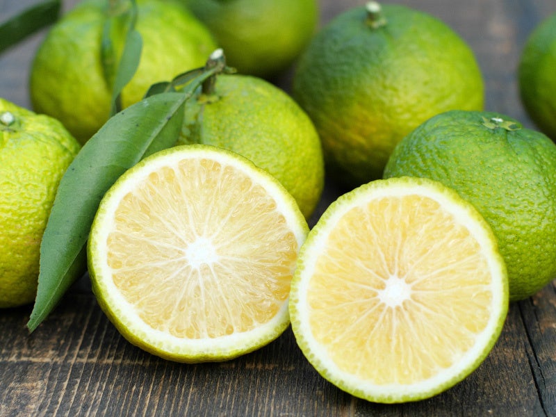 果汁が豊富で、ゆずやスダチとは違った風味があり、糖度と酸味のバランスのとれた、まろやかな味わいが特徴。