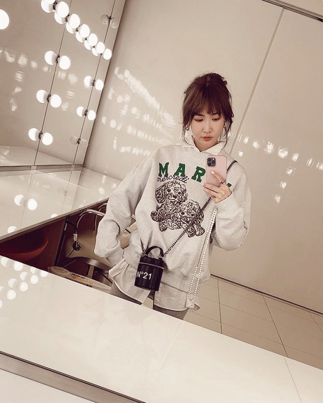- 特長:紗栄子さんと一緒にデザインしたスウェットシャツ。紗栄子さんも大好きなトイプードルをイメージしたプリントに2022SSからの新しいロゴデザインをドッキング。カラーはブランドでも人気の色を組み合わせた日本だけのオリジナルデザイン。HEATEHRとGREYの2色展開。