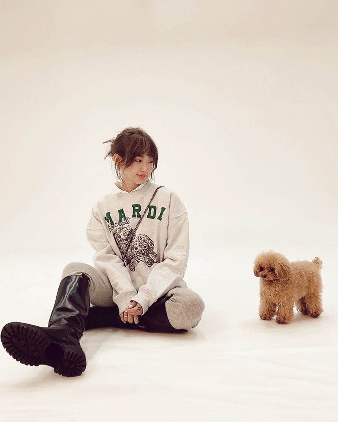 「Mardi Mercrediは好きなファッションブランドの1つで、犬や花のモチーフとデザインが可愛く、普段からも愛用しています。今回、私の大好きなトイプードルをモチーフに、Mardi Mercrediさんと限定の商品を一緒に作れて、とても嬉しく思います。ぜひ多くの人にこの商品を着ていただき、わんちゃんと共にいる時間や心温まる気持ち、気分が上がる日常、また、ハッピーな毎日を過ごしていただければ嬉しいです」